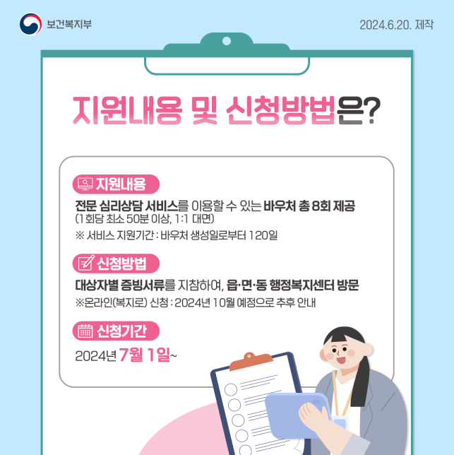 우울증, 불안증 등 정신건강 문제를 겪고 있는 사람들에게 전문가의 심리치료를 제공하는 국민마음투자 지원사업은 정부 사업이다. 2024년 7월 1일부터 보건복지부에서 시행하고 있으며, 금액은 64만원 상당이다. 이번 지원을 통해 노숙인의 정신적 안정을 지원하는 것이 주목적이다. 이번 포스팅에서는 전국 공동체 투자 지원사업의 주요 내용과 참여 방법에 대해 자세히 알아보도록 하겠습니다! 허니보이스 전 노숙자 커뮤니티 투자 지원사업 가장 큰 장점은 소득, 연령에 관계없이 누구나 참여할 수 있다는 점이다. 정신건강관리가 필요하다고 인정되는 사람 중에는 정신건강관리기관이나 국민건강검진을 받은 사람, 청소년정신건강센터 또는 해당 센터를 이용하는 학생, 자립생활을 하는 사람 등이 있습니다. 이는 청소년을 포함한 다양한 사람들에게 적용됩니다. 다만, 매우 심각한 정신질환을 가지고 있어 최우선적으로 정신과적 치료가 필요한 사람, 과거에 이미 다른 정신지원 서비스를 이용했던 사람 등은 이에 해당하지 않습니다.