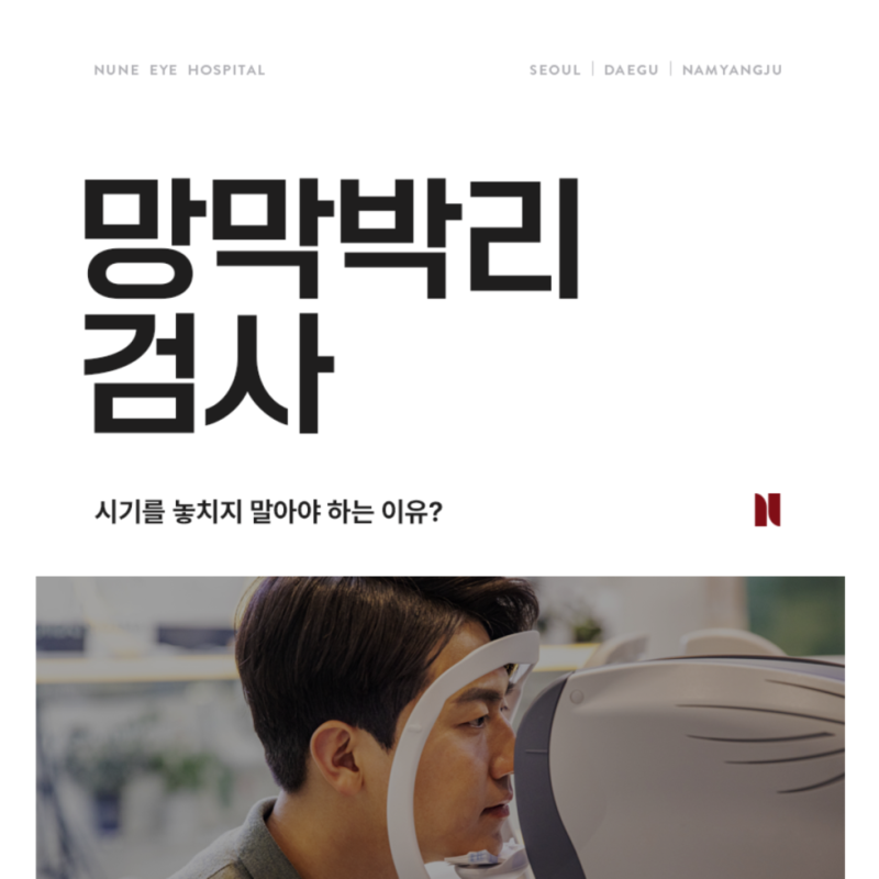 망막앞막 : 황반주름이라고도 알려져 있으며, 황반에 섬유막이 자라는 질환입니다. 시력저하, 이물이 휘어 보이는 등 황반변성과 유사한 증상이 나타나며, 증상이 중등도 내지 중증인 경우에는 유리체절제술이나 망막앞막제거술 등의 수술적 치료를 시행합니다. (누네안과병원 15층) 망막은 일반적인 검진으로는 진단이 불가능한 안질환입니다. 알아내기가 쉽지 않습니다. 그러나 망막질환이 발생하면 실명의 위험이 있으므로 정기적으로 정밀검사를 받아야 한다. 조기발견과 치료가 중요하므로 드루젠이 의심되는 등 이상징후가 있는 경우 반드시 정밀검사를 받아 눈 건강을 보호하시기 바랍니다. 누네안과병원 서울/대구 (누네안과병원 망막센터) 누네안과병원은 보건복지부 지정 안과병원(지정기간: 2021.01~2023.12)으로 망막전문의가 상주하고 있으며 다양한 정밀검사 장비를 갖추고 있습니다. 대학병원 수준. 있습니다. 왜 종합 눈 검사를 받아야 합니까? 안구 질환은 심각한 단계에 도달할 때까지 아무런 증상도 나타나지 않는 경우가 많습니다. 그래서 주기적으로… blog.naver.com 누네안과병원 서울시 강남구 테헤란로 408 누네안과병원 대구광역시 중구 달구벌대로 2179 누네안과병원에 대해 궁금하신 점이 있으시면 눈질환, 댓글을 남겨주세요! 의료진에게 확인 후 답변드리겠습니다 🙂 -누네안과병원-