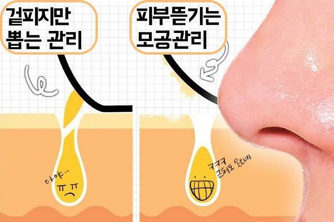 아무래도 온도가 높아져서 모공이 점점 넓어져서 피부에 올라오는 유분과 피지가 기존의 각질과 엉키고, 세수를 잘해도 막히는 것은 아닐까 싶습니다. 모공에 쌓이면 제대로 관리가 되지 않고 블랙헤드가 생기기도 합니다. 가끔은 단순한 클렌징 폼으로 세안하기보다는 블랙헤드 클렌징 오일을 사용해 관리해보세요. 피부 고민을 해결하는 직접적인 방법이라고 해서 주변에서 입소문나는 아이템으로 관리해보기로 했어요. 전 후