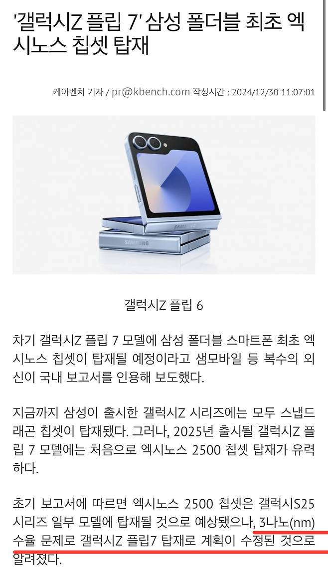엑시노스 2500을 탑재한 갤럭시Z플립7의 몰락?